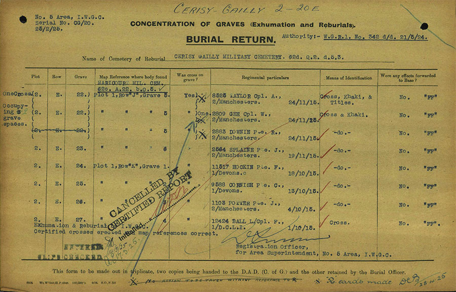 After the war Robert and the five other soldiers killed on the 24th November 1915 were exhumed and reburied at Cerisy-Gailly Military Cemetery.
