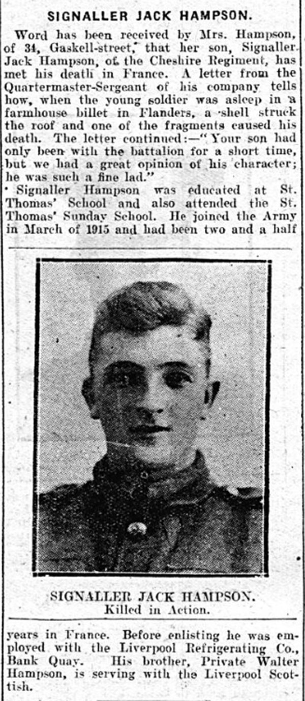 | Regiment: | 1/7th Bn Cheshire Regiment |