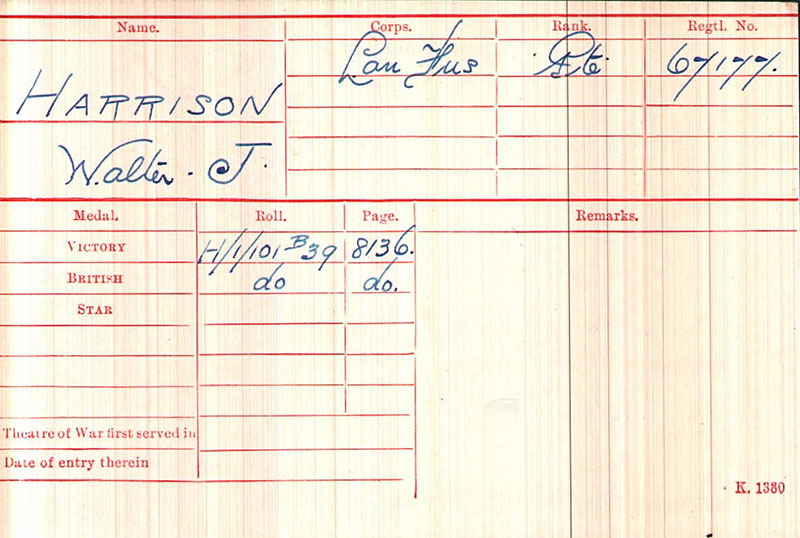 At the outbreak of the Wat Walte was initially a Bugler at Chester Castle aged 15