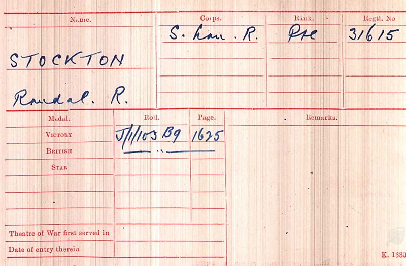 Randall was one of eleven children born in Birkenhead to George and Martha Ann Stockton, the 1891 census shows Randall age 4. His father, George age 39 was a police officer and the family lived at 13 Rhyl Street, Birkenhead. Ten years later the family were living at 231 Oliver street Birkenhead George was a police inspector, Randall age 14 was working as an apprentice pawnbroker. By 1911 the census shows that the family had move to Clotton near Tarporley where Martha was originally from, four of the children had died, George had retired and Randall age 24 was single and working as a draper traveller.