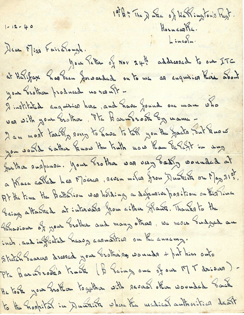 He was home on leave sometime in May 1940 and soon after that the telegram arrived announcing that he was missing in action.
