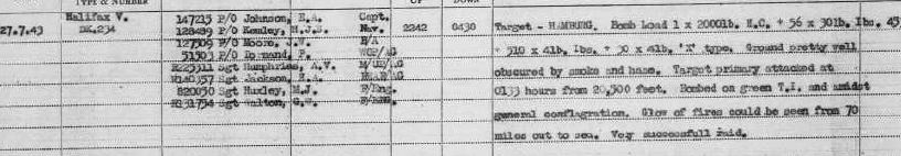 27th July 1943 Mission to Hamburg.