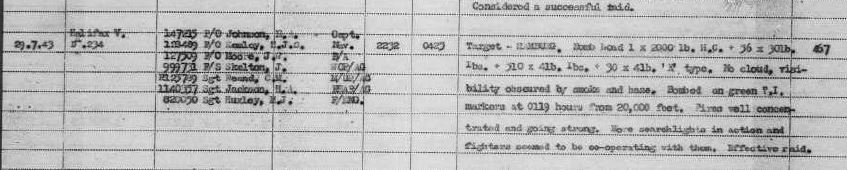 Another mission as part of Operation Gommorah with 777 bombers sent on the mission with 30 being lost. Norman flew in DK234 with Sgt EA Johnson.
