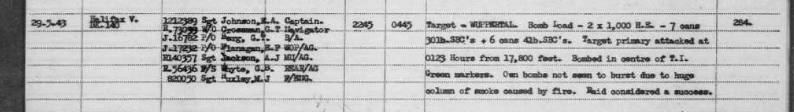 29/30 May 1943 Mission to Wuppertal