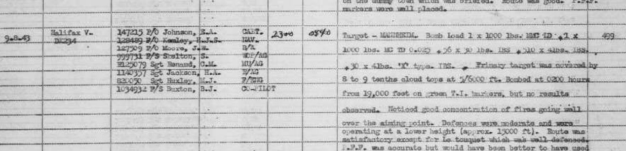 On this mission 457 aircraft were assigned to attack the BASF chemical plant at Mannheim. Norman flew in DK234 with Sgt EA Johnson.