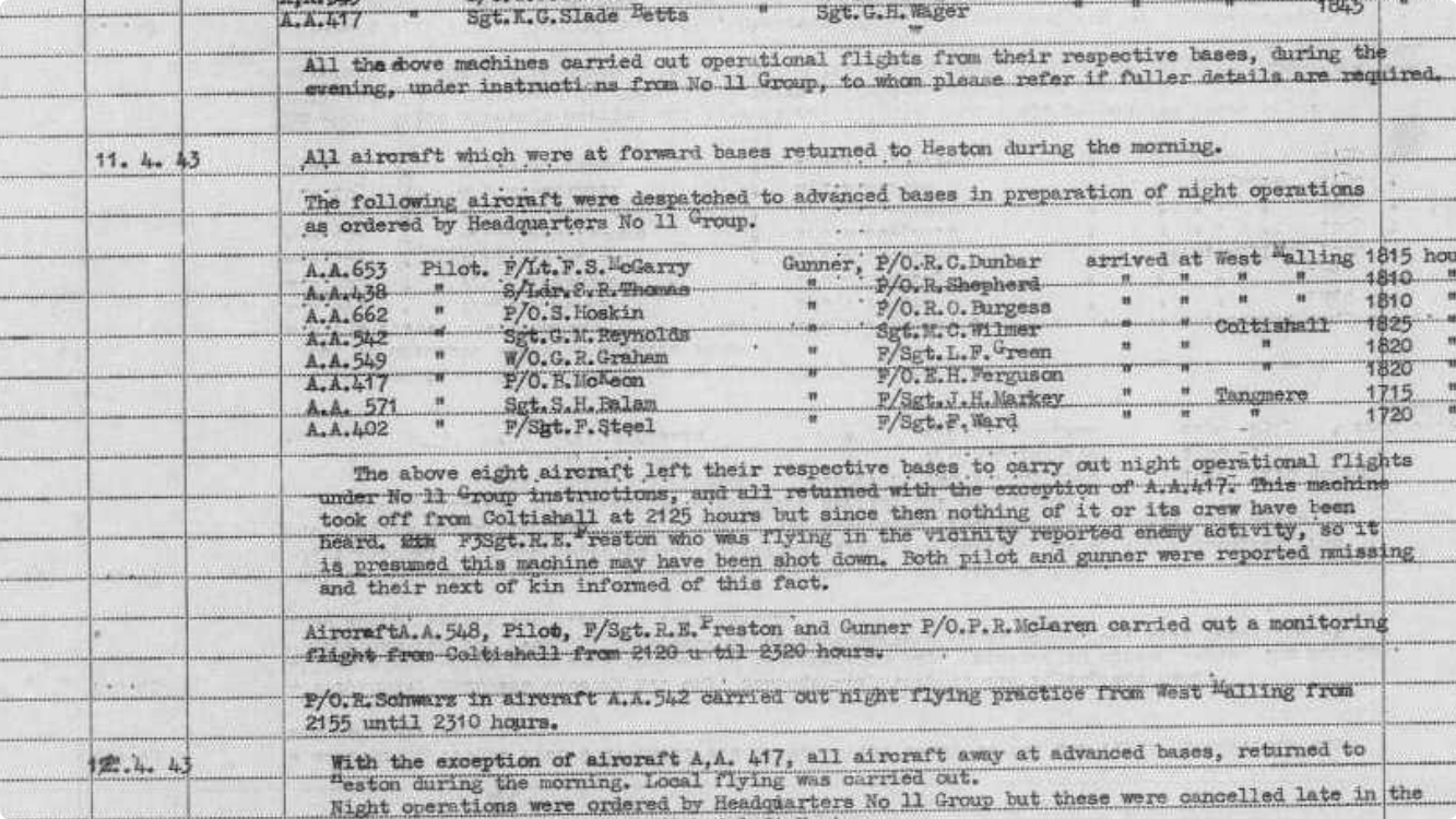 Operation Report for 11/12 April 1943
