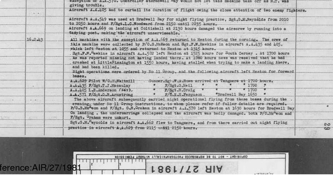 On 16th February 1943 Bartholomew had a lucky escape when the undercarriage of his aircraft collapsed on landing