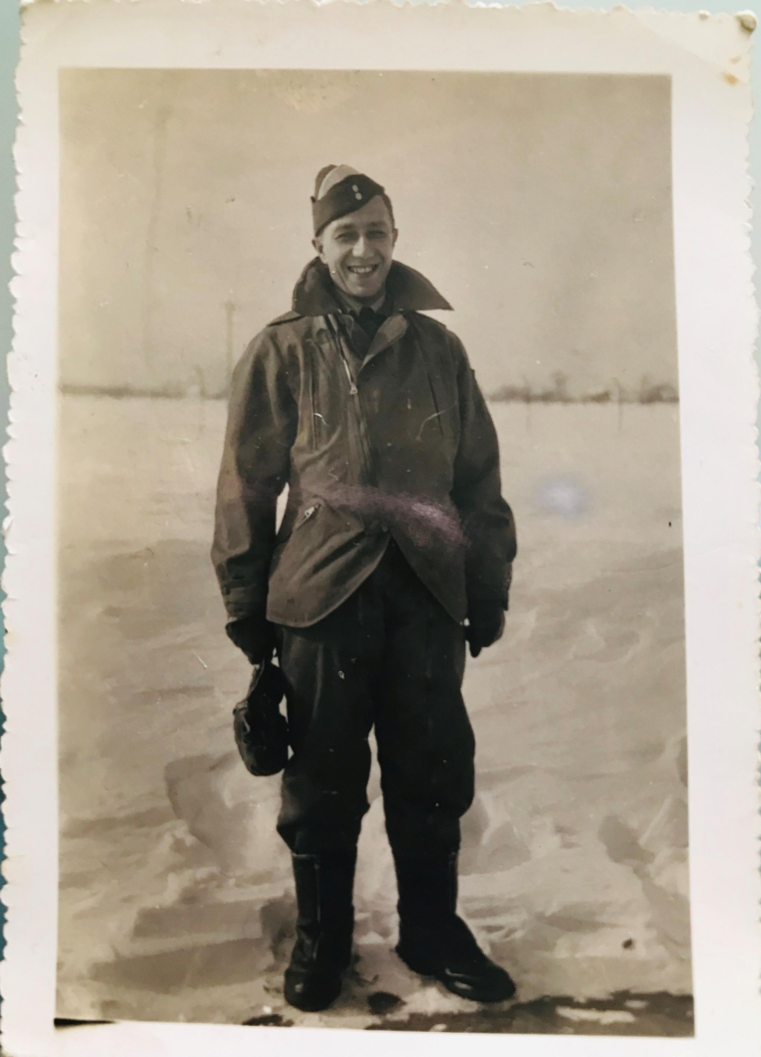 Enlisted: RAFVR 28th May 1942. Completed his military training in England and Canada (September 1943 – June 1944), qualifying as an Air Bomber with the rank of Sergeant.