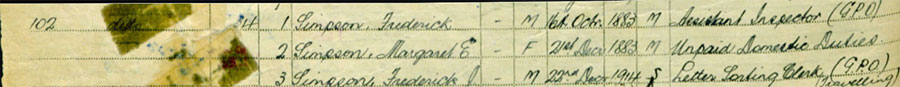 Born on the 22nd December 1914, the 1939 register shows Frederick living at 102 Claughton Avenue, Crewe, and working in the sorting office at Crewe, where his father was an Inspector.