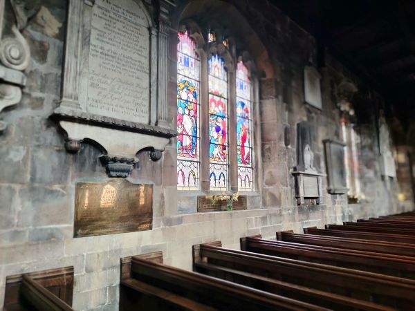 A memorial plaque to Alfred hangs on the lefthand side of St Mary's Church in Sandbach, inscribed with these words: