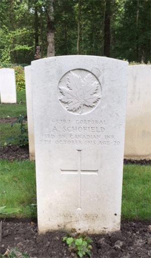 Born 27th January 1893 Albert was one of seven children born to Walter and Eliza Schofield of 26 Lord Street, Bollington, Macclesfield. In 1911 Albert age 16 was working as Joiner, his father Walter and his elder brother also named Walter were working for a local brewery. Two years later, 2nd May 1913 Albert immigrated to Canada, sailing from Liverpool landing at Quebec.