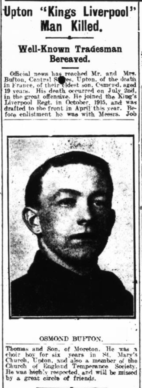 | Died of wounds | Saturday 1st July 1916 |
