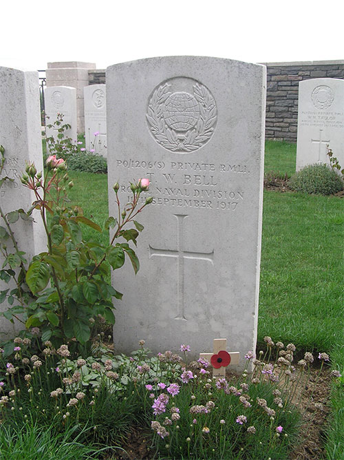 After recovering from his injuries, Private Thomas Bell returned to his Bn. on 17th June 1917. At that time they were in training at Moroeuil, north-west of Arras. They returned to the front line in mid-July, in the area around Oppy Wood. On 9th September 1917 the 2nd Bn. Royal Marine Light Infantry relieved the 1st Bn. R.M.L.I in the front line. During their time in the line they were providing working parties, possibly on the repair of trenches and parapets. On 11th September, the battalion war diary states that there were two casualties, one of those was Private Thomas Bell.