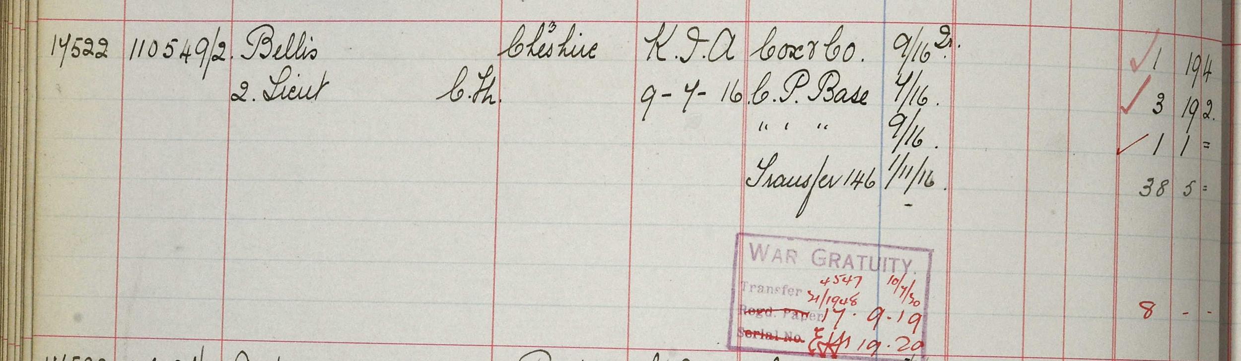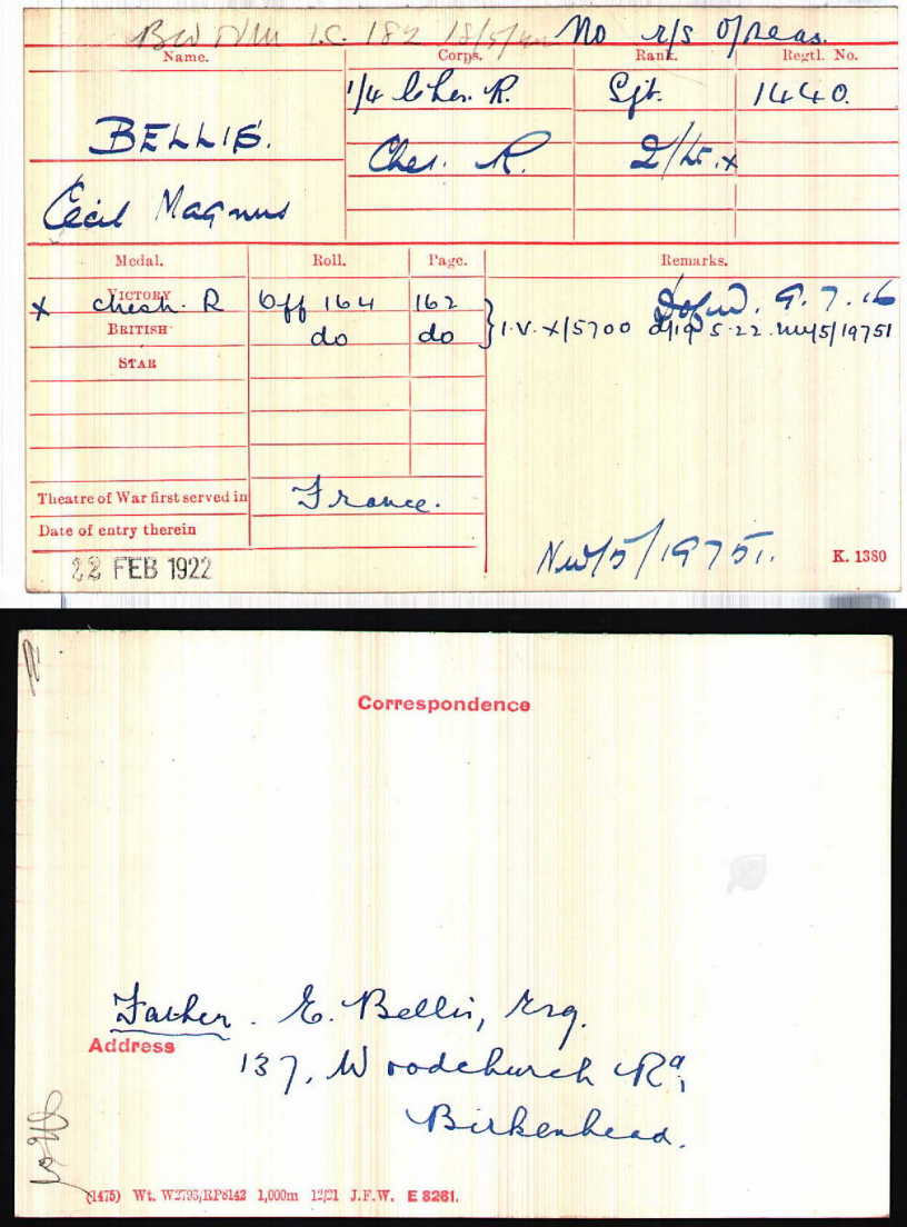 Cecil Magnus Bellis, Cheshire Regiment.