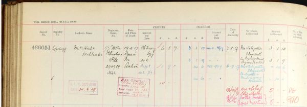William's mother is named on his Soldiers' Effects Record as co-legatee, along with a Miss Agnes Marlin. Perhaps she was the girl he left behind?