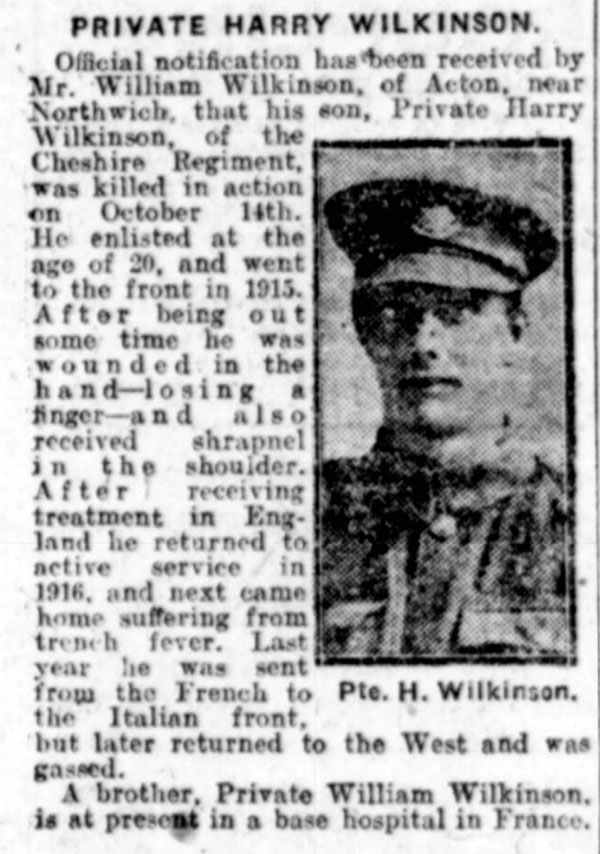 | Regiment: | 1st/4th Bn Cheshire Regiment |