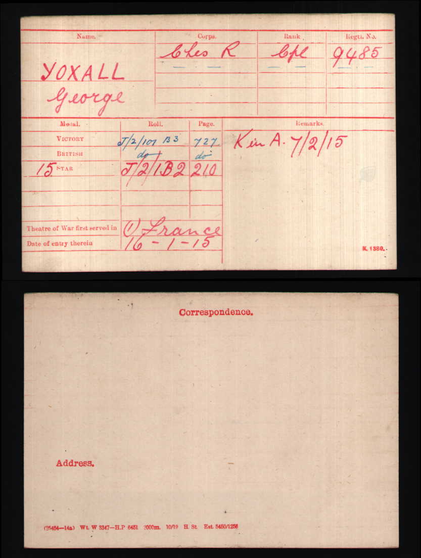 He was in France for only three weeks before he died and died on the same day as his grandmother Emily YOXALL 17 Kinderton Street, Middlewich, Cheshire, England
