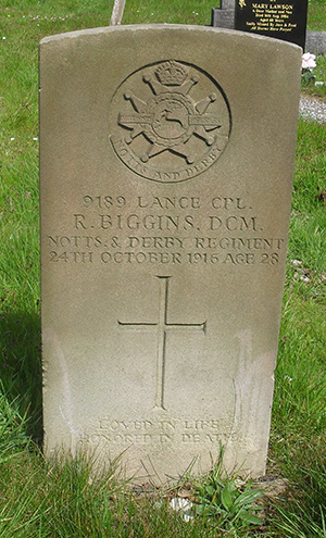 We publish a new photograph of Private R Biggins, of the 2nd battalion Sherwood Foresters, whose home is at 17, Lynas Street, Birkenhead, and who in September last was awarded the D.C.M. for gallantry. In the official list the reference to private Biggins is as follows:- Private R. Biggins 9189 “ For conspicuous gallantry, when he led two other men an a bombing attack on a crater, which they gained, occupied and held until relieved at 2.30pm on August 10”