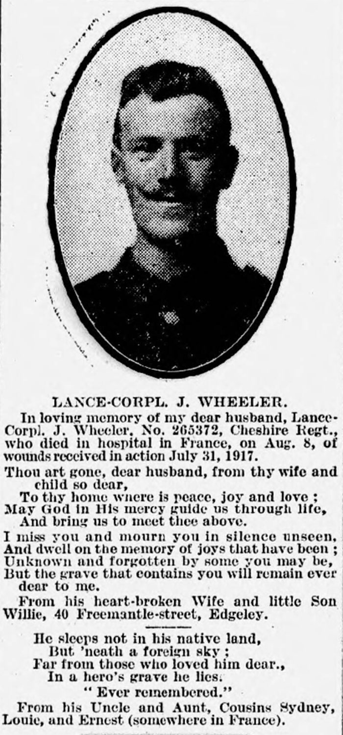 | Died of wounds | Wednesday 8th August 1917 |