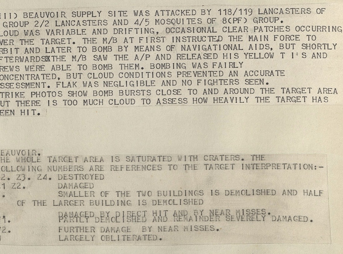 Bomber Command mission report and damage assessment for Beauvoir