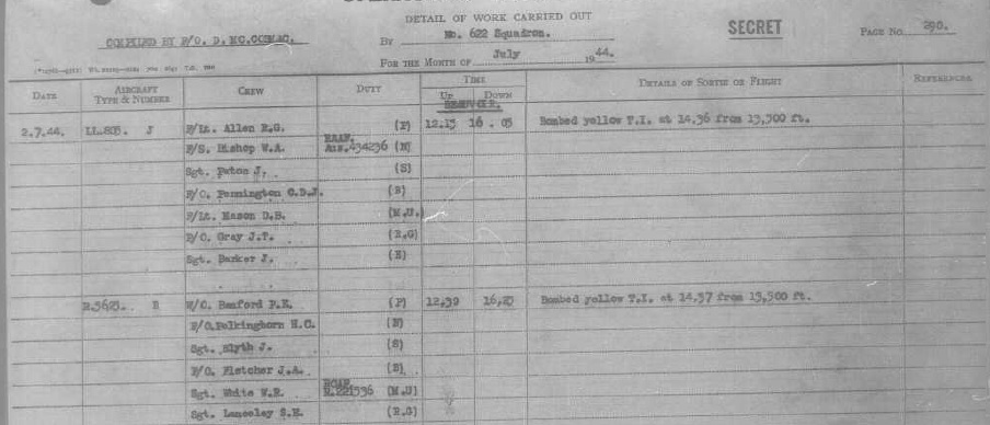On 24th June 1944 a force of 535 Lancasters (including 15 from 622 Squadron) bombed V1 targets in Northern France at night. 622 Squadron were assigned to bombe the site at Rimeux.