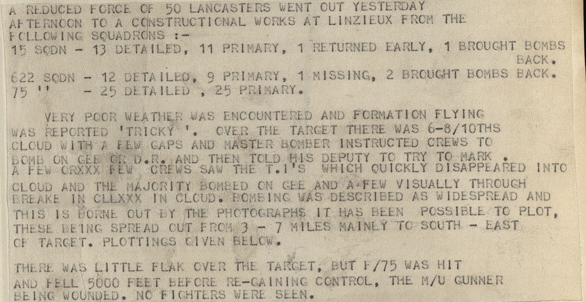 Bomber Command report on the Linzeux mission