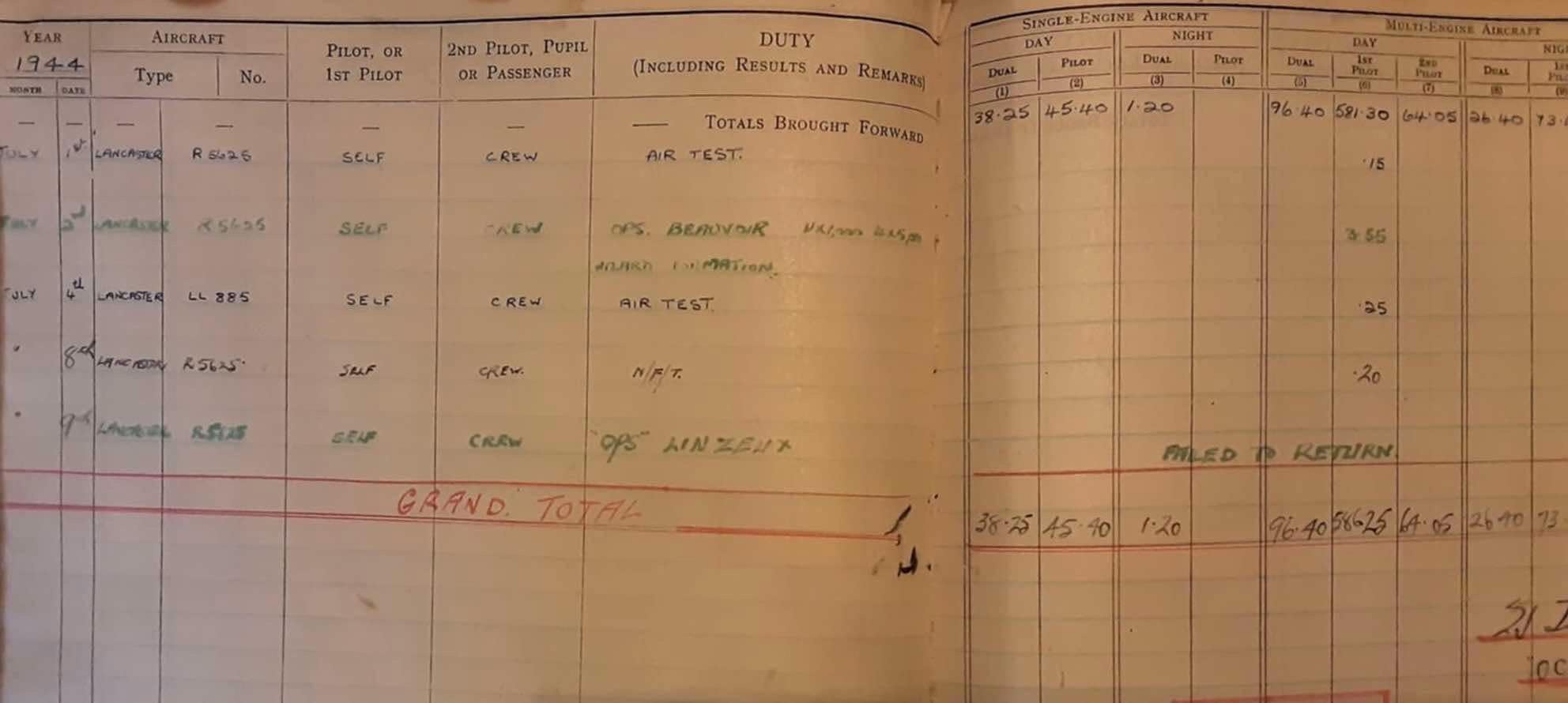 The last entry in Philip's log book ( Credit George Price)