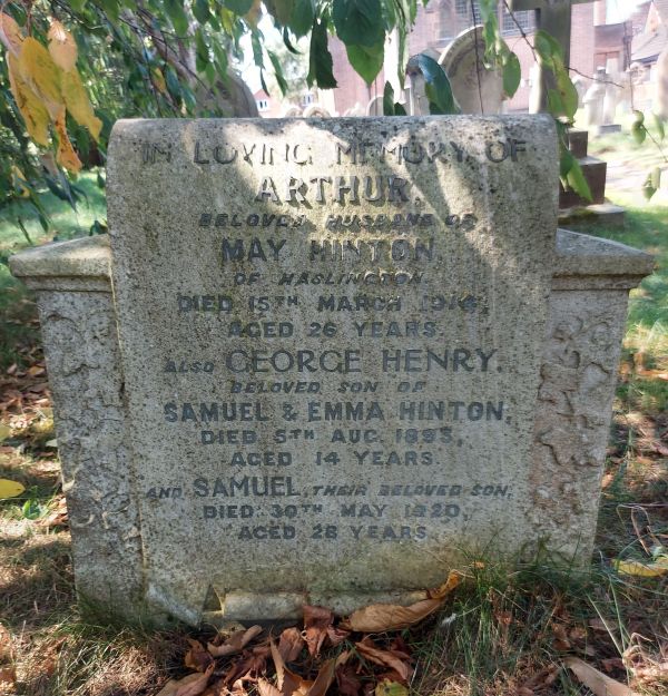 Private Samuel Hinton 35088 died on 30th May 1920 of Phthisis, probably tuberculosis. He was 28 years old.