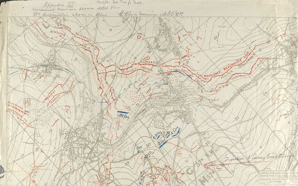 Marcoing 20th. 23:00hrs The Bn. recieved orders while itself in readiness to renew the attack at dawn on the RUMILLY trenches and village. During the night the hour of the attack was postponed till 11am, the orders also stated that 9 tanks would assist the attack.