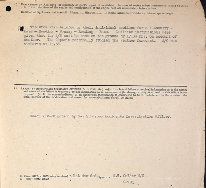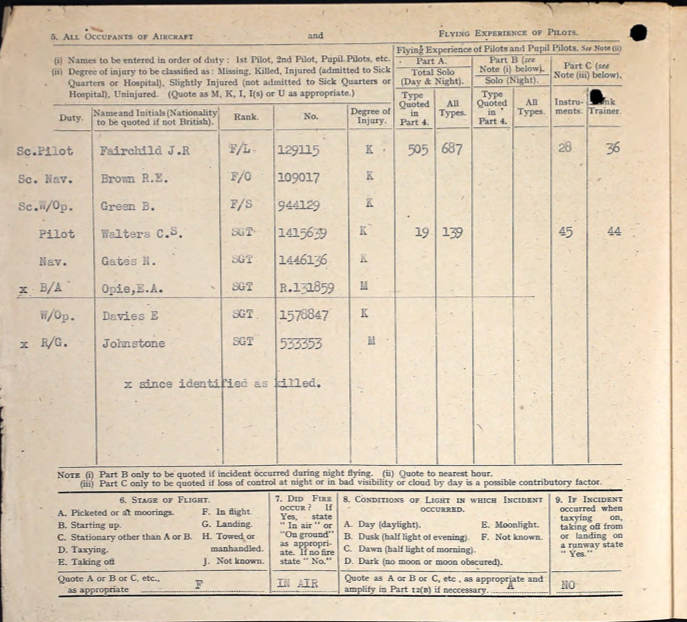 Accident Report 2. Note Ronald is incorrectly listed as R.E. Brown but his service number is correct.
