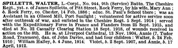 | Regiment: | 9th Bn Cheshire Regiment |