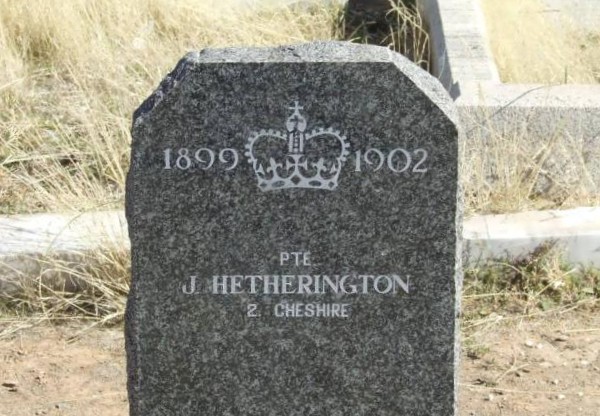 Robert's headstone at Springfontein Cemetery, South Africa, wrongly inscribed J Hetherington.