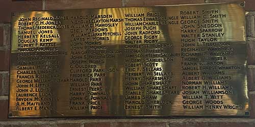 George Linekar's name on te WW1 War Memorial in St. Hildeburgh's Church, Hoylake.
