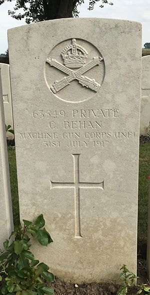 Charles' grave in Vlamertinghe New Military Cemetery, Belgium