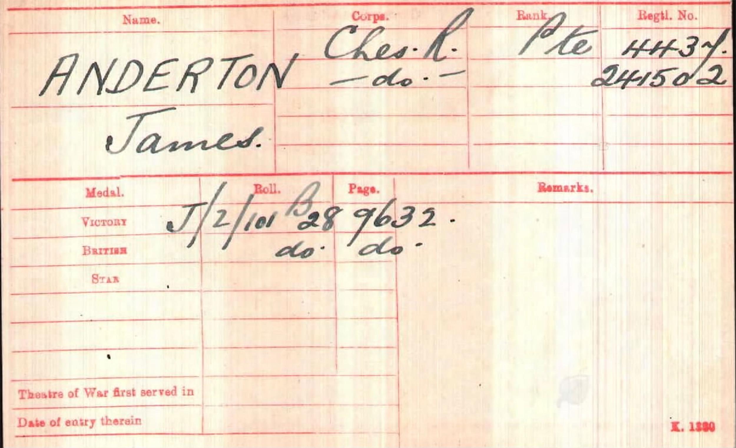 Son of Jane Anderton, of The Demage Cottages, Upton, Chester.