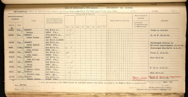 John enlisted first into the Royal Army Ordnance Corps (regimental number 618820) but transferred to Duke of Edinburgh's 1st Battalion Wiltshire Regiment (number 27217). By March 1918, this battalion was part of the 7th Infantry Brigade, 25th Division.
