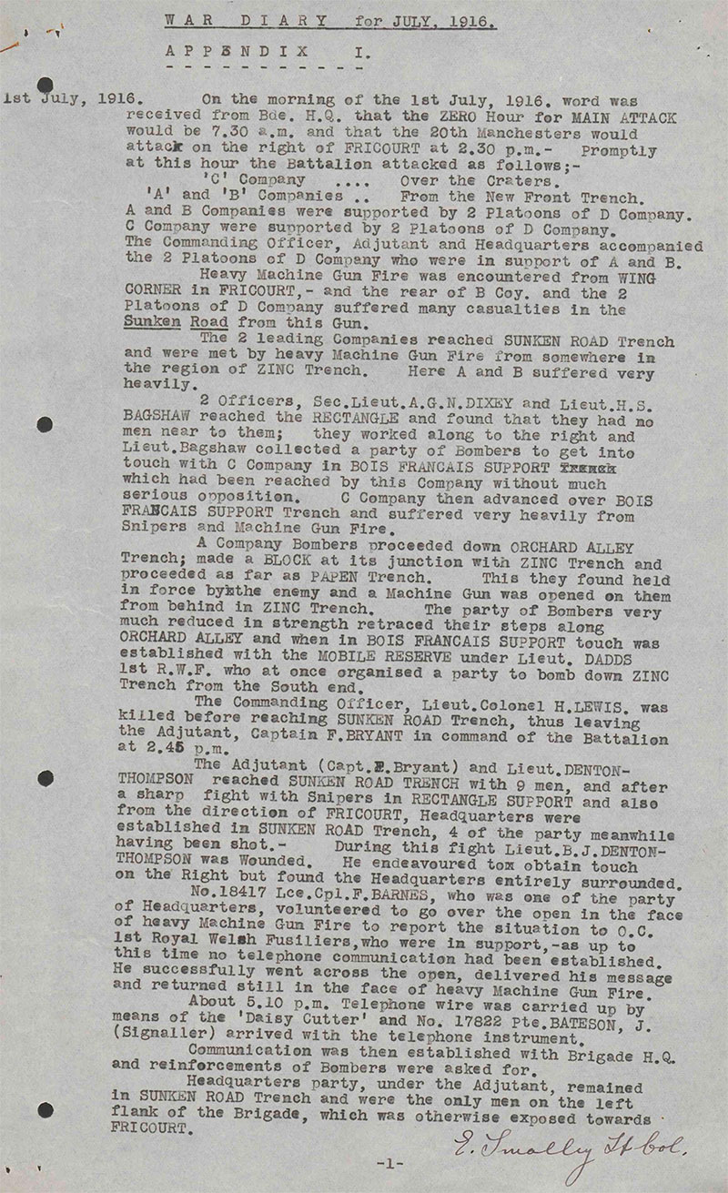 Leslie was the youngest of four brothers and all had been born in Eccles. Their parents were Harry Butler, a salesman, and Catherine Butler. He went to school in nearby Monton and won a scholarship to Salford Royal Technical School (later Salford University). He then went to work for Tullock Ltd in Manchester. Only a few years before the Great War, the family had moved to Bramhall and taken up residence at "Ashbourne" on Ack Lane. Leslie had become a keen cricketer by this time and played for the Bramhall Club. Recruitment for the 20th Battalion - the fifth of the "Pals" battalions raised by the Manchester Regiment - started at the beginning of November 1914 and Leslie was amongst the first to enlist. He was assigned to No. 4 Platoon in "A" Company. He went overseas with the Battalion a year later and was one of its specialist snipers. He was killed on the first day of the Battle of the Somme.